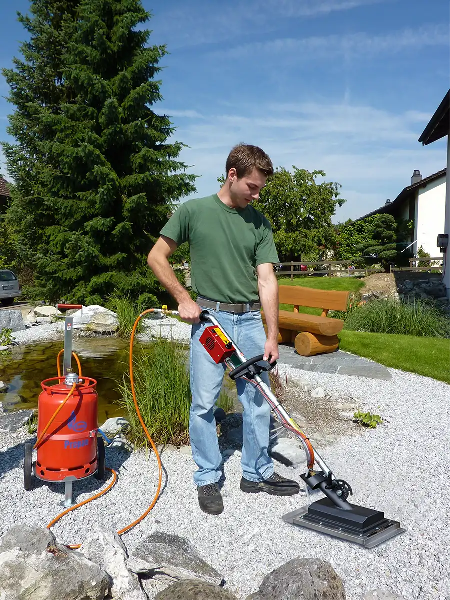 Der InfraWeeder Eco ist das tragbare Profigerät für Wege, Plätze und Anlagen – herbizidfrei und ohne offene Flamme. Das Turbogebläse verstärkt die Infrarotwirkung für schnelleres Arbeiten, die elektronische Zündung sorgt für einen komfortablen Start und leisen Betrieb. Für maximale Bewegungsfreiheit gibt es den Eco als B2R (Butan, Rucksack für 3-kg-Flasche), als P2 (Propan, Komfort-Rucksack für bis zu 7,5 kg) oder als P5 (Propan, 5-m-Schlauch mit Wagen) für einen erweiterten Arbeitsradius. Alle Modelle überzeugen mit präziser Wirkung in Sekunden; das Turbogebläse und die E-Zündung reduzieren die Arbeitszeit spürbar. Optionales Radset/Wagen erleichtert längere Einsätze mit grösseren Gasflaschen.
