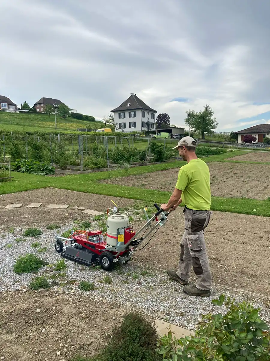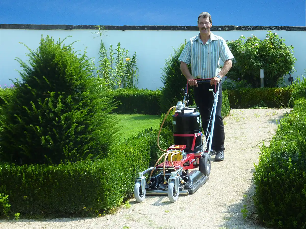 Erleben Sie die fahrbaren Unkrautvernichter der nächsten Generation – ideal für Gärtnereien, Gartenbau-Betriebe, Friedhofs- und Liegenschaftsunterhalt, sowie Krankenhäuser, Altersheime und Sportanlagen. Diese Modelle entfernen Wildwuchs und Unkraut ganz ohne Chemie, überzeugen durch hohe Flächenleistung und niedrigen Gasverbrauch und eignen sich sowohl für private, als auch für professionelle Anwendungen. Das Modell Master R bietet dabei zusätzlich einen stufenlosen Fahrantrieb für kraftloses Manövrieren auf grossen Flächen oder in Hanglagen.