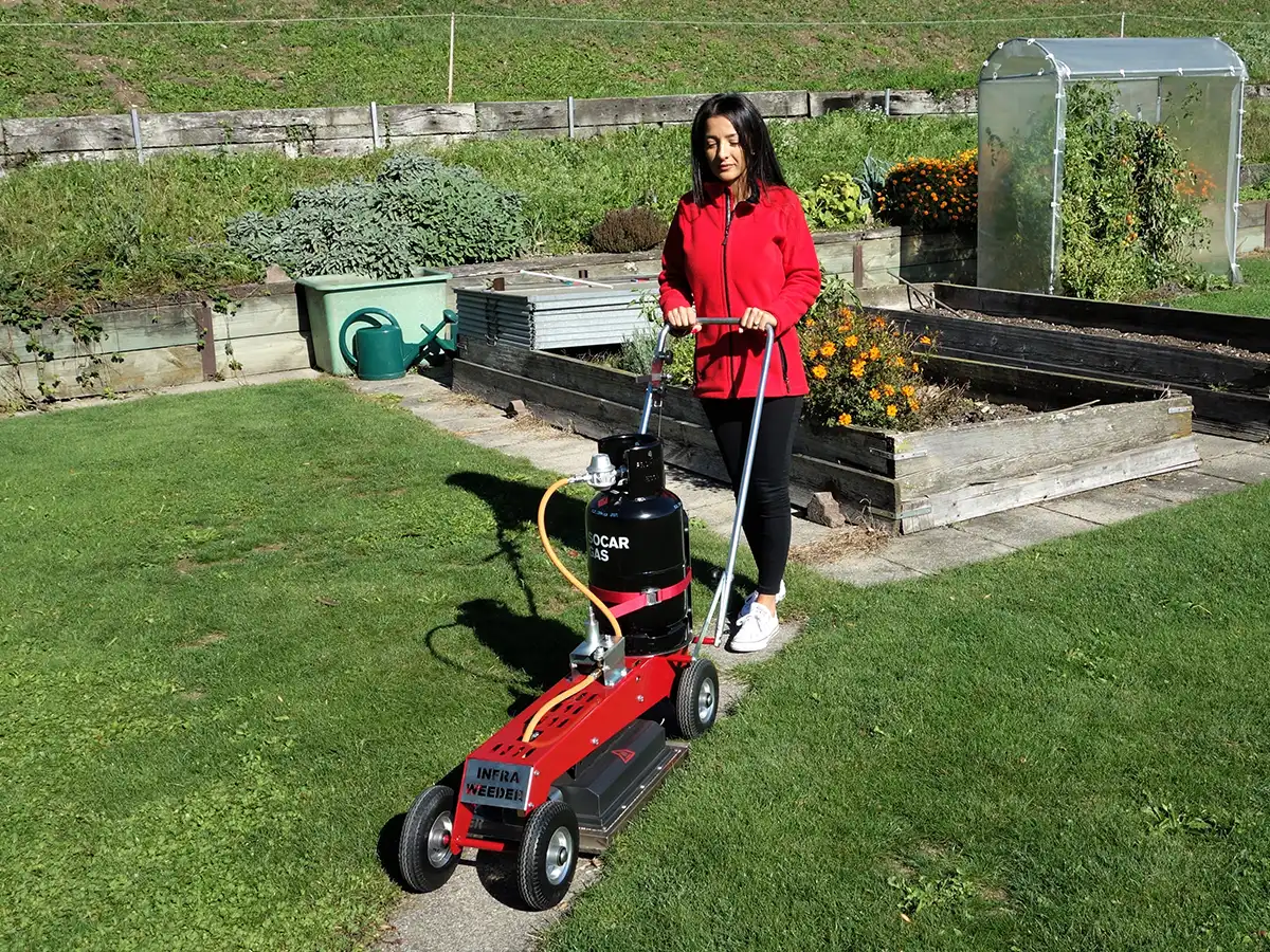 Der InfraWeeder Ronco ist das fahrbare Infrarot-Profigerät für Wege, Gehsteige, Hofeinfahrten und verwinkelte Areale – herbizidfrei und ohne offene Flamme. Er überzeugt durch Leichtigkeit und kompakte Bauweise; die Brennfläche ist wendig und präzise, der Betrieb leise und sparsam. Zuverlässige Unkrautentfernung auf Verbundsteinen, Kies- und Plattenwegen, Privatplätzen und Liegenschaften bis hin zu engen Friedhofsanlagen, Flachdächern und Tennisplätzen. Dank hoher Flächenleistung bei geringem Gasverbrauch ist er die ideale Wahl für private und professionelle Einsätze, wenn Sicherheit und Kontrolle zählen.